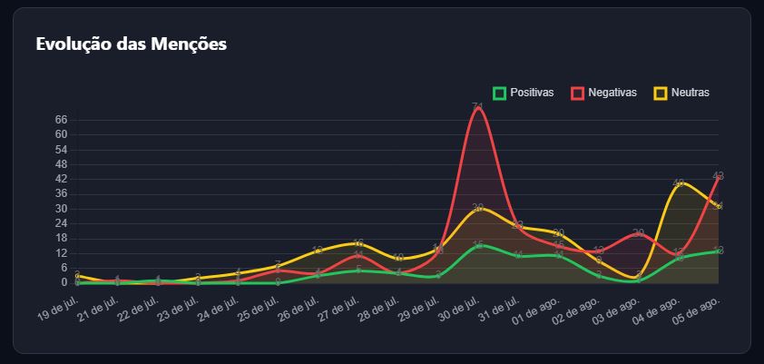 Sustentada por 41% de menções neutras, que atuaram como “amortecedor” diante dos picos negativos. Sem elas, a média teria caído, já que 43% das menções foram negativas, puxadas especialmente pelas sanções dos EUA ao ministro.