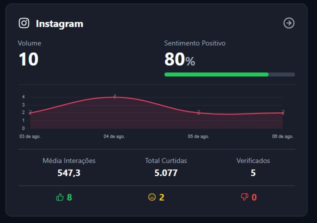 - Instagram: 10 menções, 80% positivas, sem registros negativos.